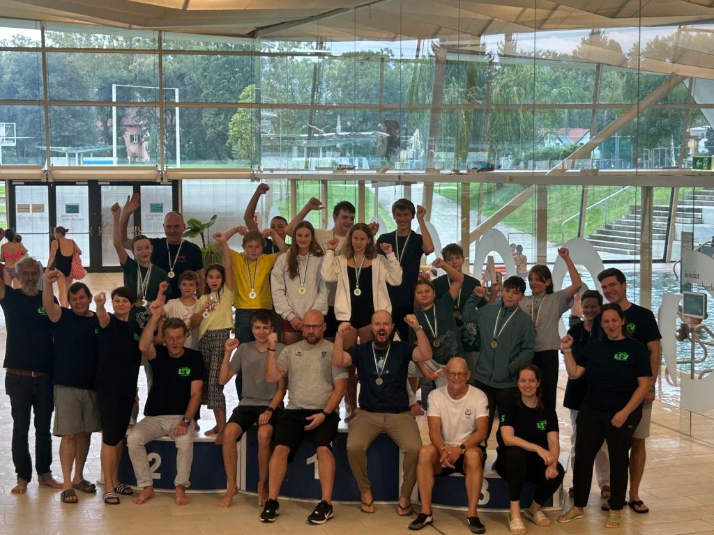 Mit 5 Gold-, 6 Silber- und 9 Bronzemedaillen unterstrichen die Panthers ihre starke Form – obwohl Flossenschwimmen für sie eigentlich nur Ausgleichssport ist. „Im Gegensatz zu den Flossenschwimmern sind wir Teamsportler. Das merkt man: Die Kids hatten den ganzen Tag Spaß im Becken, feuerten sich gegenseitig an. Unsere größten Erfolge erzielten wir in den Staffeln – mit Gold und Silber als gemeinsames Highlight,“ erklärt Trainer Karl Richter-Trummer. Besonders spannend: Im U14-Staffelfinale entschieden gerade einmal 1,03 Sekunden über Sieg und Platz zwei.